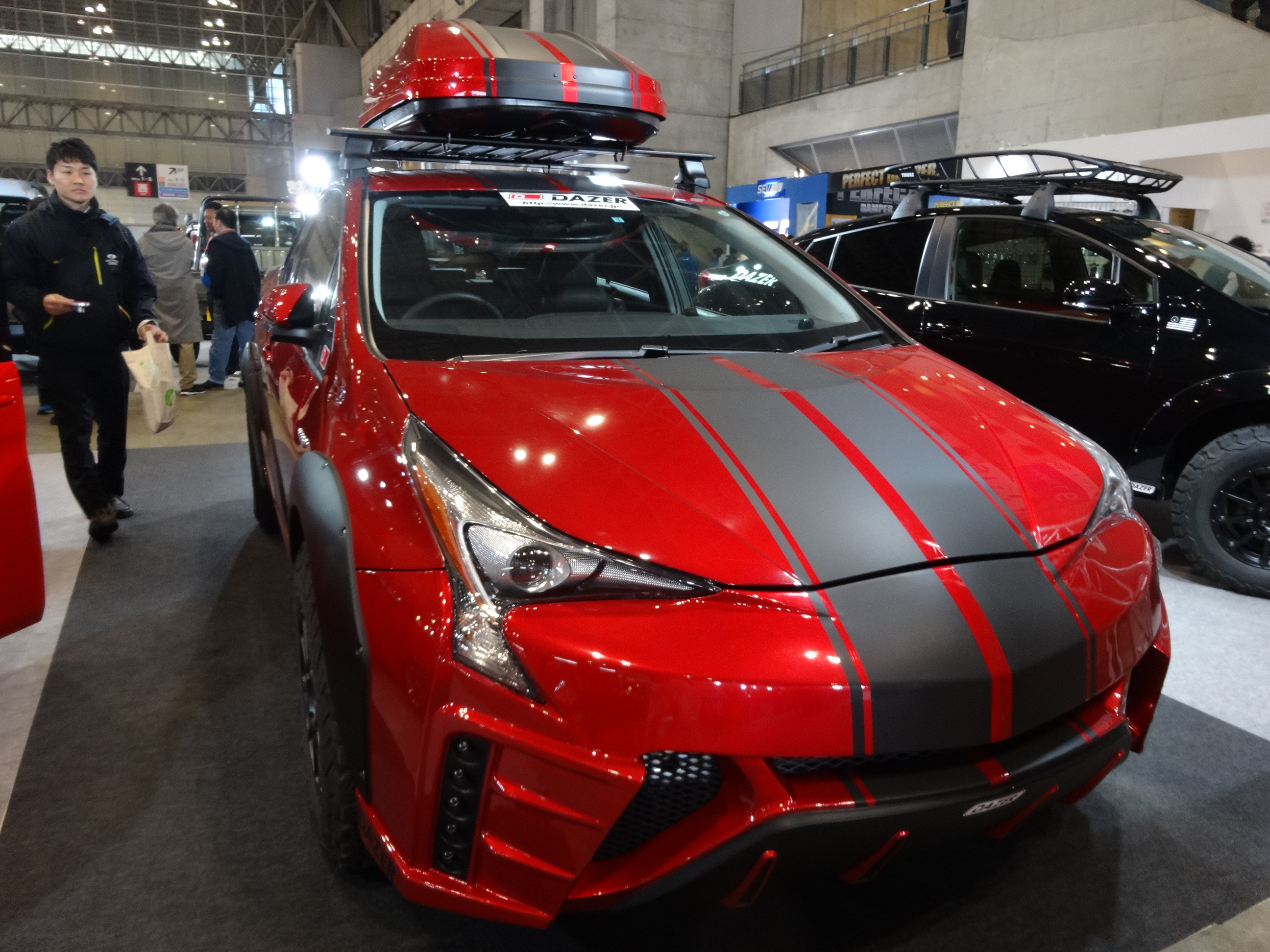 | 平成28年11月 | 弊社発案によるプリウス (ZVW55) リフトアップを 他社共同のもとDAZERプリウス-Xとして開発 SEMA SHOW 2016に出展 (LasVegas Convention Center) ![]() ![]() ![]() |
