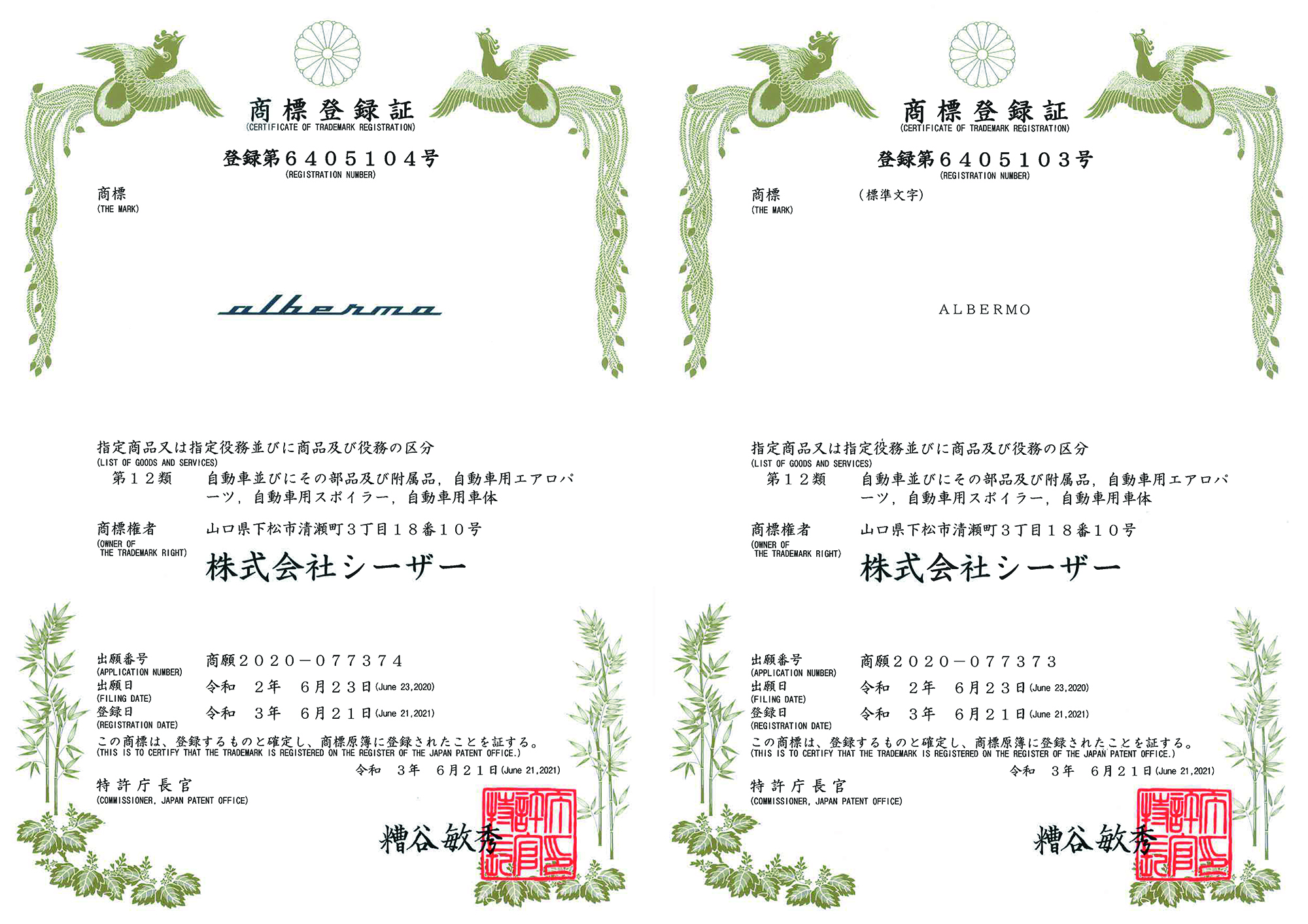 | 令和3年6月 | 「albermo」を商標登録![]() |